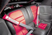 來自傳統室內裝飾領袖-Katzkin的紅色打孔裝飾使車內充滿生氣,地上有鑲了花邊的地毯,椅子上還有印了Audio Synergy標志的抱枕。在車的外部裝飾上,Trebbi用幾種油彩加強了3000GT側面的輪廓。車的四個輪子是用了AT Italia的十八英寸,鉻合金邊的銀色Flash輪子,并用H&R降低彈簧降低了一又二分之一英寸。一個Wings West的刮水器代替了原廠的刮水器。Trebbi又用了雷射的貼花紙裝飾在Spies-Hecker重新噴漆過的車身上。而白色的氖燈從車底盤發出光線作為和紅燈的對比。