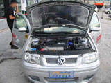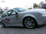 SAM’S改裝店位于新鎮(zhèn)路,店名標識的SAM當然就是店主了,是一位極具實力的業(yè)內(nèi)人士,他本人從事的是汽車廠商的零件采購供銷工作,因為興趣和執(zhí)著加上本身是上海人,所以在上海開了這家汽車用品及改裝店,SAM屬于那種頭一面見到就覺得很不一般的人,魁梧的身材,壓低的棒球帽印制著自己的店名,說話有條不紊,并且隨時給人以驚喜和思考的感覺。提起他的座駕愛車,恐怕有過改車經(jīng)驗的人大都會對此刮目相看,一輛動力改裝過的寶來,據(jù)他自己的話來說,現(xiàn)在只是完成了其中的一部分,即動力上面的和內(nèi)飾上的改裝,其它的部件要等到訂貨到了以后繼續(xù)進行了,例如離合等。
