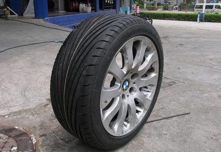 回家就立即準備換輪胎,我這個原唱配備的BRIDGESTONE R050A 防爆輪胎和Z4的相同,4S報價高達4800元/條,如此黑心,當然不能再用了,由于早有點研究,以前選定的DUNLOP MAXX廣東無貨,PS2無此規格,最后選定GOODYEAR F1 GS-D3,方案是換2條FI ,將剩下的一條原廠防爆胎作為備用輪胎使用。
