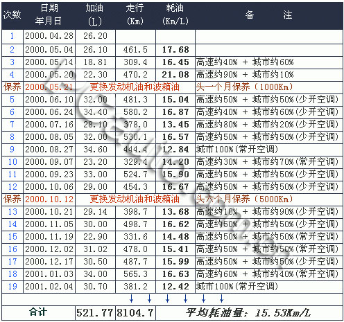 記憶猶新的網(wǎng)友可能記得,在PCauto的網(wǎng)站上也同樣有篇文章,是一位國內車主在使用一汽大眾寶來過程中的一個耗油全記錄(詳見《寶來1.8T車主15000km油耗全記錄:一年買油支出約5500元》)。筆者覺得這種做法很好,通過記錄每次加油和行走的路程,不僅可以幫助車主自身充分了解汽車的性能,也可以在這種記錄中發(fā)現(xiàn)各種問題,如:觀察到自己的愛車在每次加油后的耗油量越來越大,就應該考慮是否出了問題要對車進行檢查;又比如說可以觀察是否到了更換發(fā)動機油和波箱油的保養(yǎng)期;又或是是看車胎是否有點氣壓不足等等;順便還可以管理一下自己加油方面的財務支出,一舉多得呢。