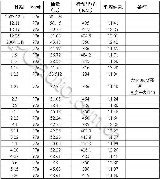 從2003年12月5日到2004年12月5日,我的新雅閣2.0油耗記錄剛好一年,現(xiàn)在把它奉獻出來供大家參考一下~
