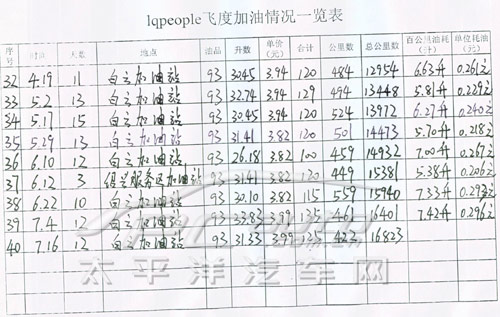我的記錄習慣:一是在工作筆記的扉頁按A4紙的65%縮小打印并粘貼一張《飛度加油情況一覽表》,詳細記錄12項加油數據;二是每次統計后在相關論壇上實時更新;三是用“我愛我車”軟件在電腦上做記錄并匯總。