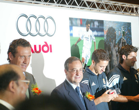 2003年德國奧迪公司與皇家馬德里足球俱樂部結成戰略同盟,奧迪正式成為這支被稱為“銀河艦隊”的球隊三個賽季的汽車合作伙伴,并贊助了皇馬當年8月的北京之行。