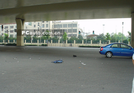 賽拉圖遠處是翻側的面包車,可見當時的撞擊相當激烈。小面包車的車速應該較快。