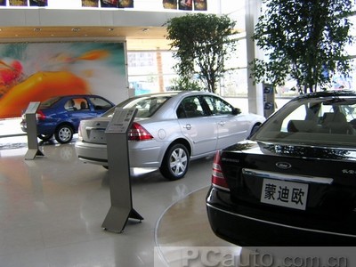上海福成的銷售廳不算大,展廳中停放著兩款04款蒙迪歐系列和兩款嘉年華系列車型,總體感覺確有些局促,但是充滿代表FORD汽車文化的壁畫和綠葉植物的點綴倒是讓展廳中顯示出一些人文氣氛來,而非總是冷冰冰的玻璃和金屬材料給人的拒人千里的感覺,話說回來,在國內車市中,長安福特的特約經銷商展廳風格和服務態度一直是在業內和消費者群體中有口皆碑, 不足:如果能再有些兒童游玩區等為客戶想到的附屬功能區就更貼心了。