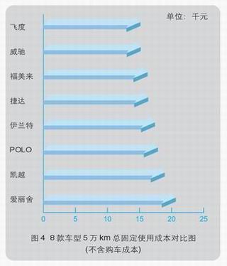 從以上數據不難看出,如果包含購車價格在內的話,在國產1.6 L左右家用轎車市場中的固定使用成本節省冠軍就是飛度,捷達在發動機多了0.1 L排量的情況下位居第二。飛度由于自身的產品價格就要比其他車型低了很多,所以在總使用成本中購車價格就占了很大的便宜。捷達則是屬于平穩發揮,各個方面的都存在或多或少的優勢,因此也取得了較好的成績,排在了第二位。其他一些車型雖然在個別項目中的節約成本也取得比較不錯的成績,但是在另一些項目中很可能就落后到了中下的位置,表現不是很穩定。而如果去除購車成本的話,車輛的純固定使用成本中,兩款發動機排量為1.5 L的日系車型排在了第一梯隊,其燃油經濟性確實出眾。但是同樣為1.6 L排量的其他6款車型中,福美來與捷達又互為伯仲,處于第二梯隊。綜合各個方面的比較不難發現,8款車中有一款車在各個方面的表現都非常穩定,基本上都處于前三名的位置,那就是捷達。如果以綜合實力評比來確定此次1.6 L左右家用轎車使用成本大比拼的贏家的話,還是應該授予捷達。