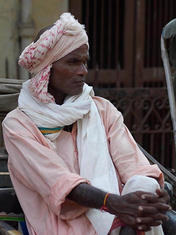 印度人真可謂是文明古國,感覺那里人民含蓄且深沉。我們剛從熱情洋溢的尼泊爾而來,感染了一身的謙和氣息,吃飯時見到印度的侍者,趕緊迎上笑臉,雙手合十地用上當地問候語:“NAMASDIE(你好!)”。不想,侍者面無表情,毫無反應。再看對面桌上的一些看似上層社會的印度人,也是一臉嚴肅,不拘一笑。于是我們估計,印度人大概都是非常憂國憂民的,日夜思考著如何強國健民,所以一臉沉重。