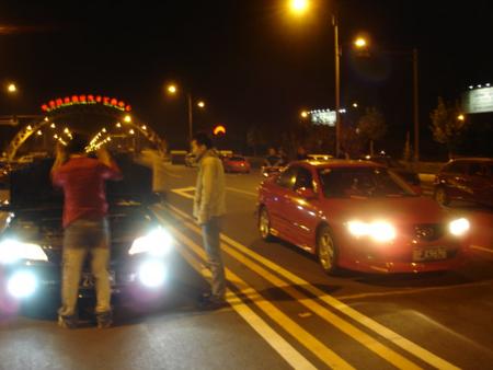 日前,某論壇上發(fā)布了一則帖子,主題是邀約飆車愛好者參加1月20日在亦莊舉行的一場被喻為“2006年春節(jié)前最后一場直線04”的汽車比賽活動(dòng)。當(dāng)晚,記者在現(xiàn)場看到,近40輛改裝車聚集在一起,觀戰(zhàn)人數(shù)達(dá)五六十名。然而,在比賽即將開始前,一輛警車趕到現(xiàn)場并驅(qū)散車隊(duì),該比賽最終未能如期舉行。