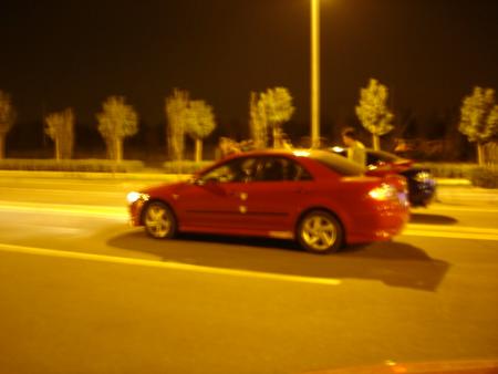 1月20日晚9點(diǎn)40分,北京亦莊經(jīng)開國際汽車廣場的黑暗突然被一束束白色的車燈光照亮,隨即汽車排氣管發(fā)出的低沉的轟鳴聲夾雜著高扭力發(fā)動(dòng)機(jī)傳出的嘶吼聲徹底打破了廣場上空的寧靜。只見一輛黑色的車在一個(gè)急轉(zhuǎn)彎后戛然停在了路邊,柏油路面上隨即留下兩道清晰的黑色剎車痕跡。這輛黑色汽車,從外表已經(jīng)很難看出是一輛馬自達(dá)6,車身被裝飾得更像一輛賽車,扁平的輪胎,低低的車身以及一對白得發(fā)紫的燈光。