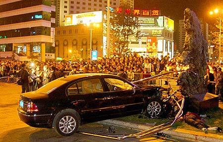 昨日20時07分許,一輛黑色帕薩特轎車沿著東風東路行駛,當這輛轎車閃過郵電大樓路口時,驚呆周圍的群眾:帕薩特轎車撞傷2名行人后,最后沿著路邊的公交車站臺邊緣沖向東風廣場,又造成3名群眾當場死亡,21受傷,其中17人重傷。