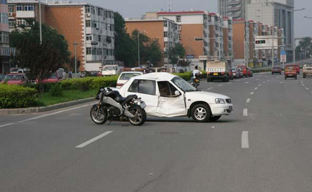 美國摩托撞國產夏利 夏利“壯烈犧牲”