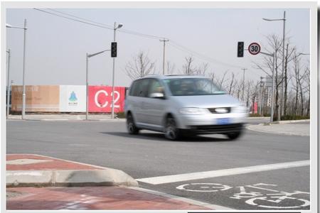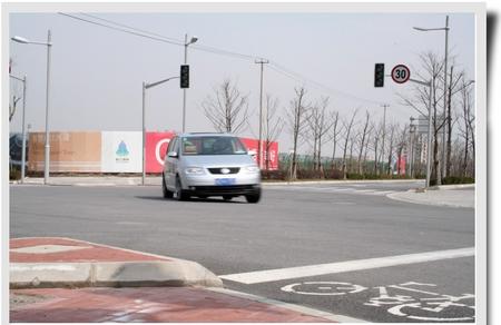 找了個幾乎沒有車輛過往的十字路口(信號燈黃燈閃爍),將LD,小LD放下車,計劃好路線,讓老婆選好拍照角度,俺出發也!