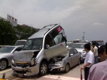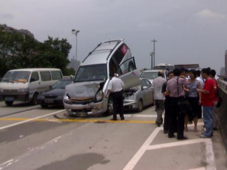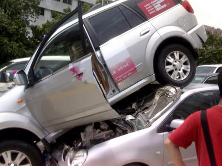 6月5日中午,事發黃埔大道,起因不是很清楚,在暨大門口的下橋位,前后兩輛是長城哈弗,都是新車沒有上牌,中間是三箱POLO。 可憐的POLO,作了夾心餅不算,連前蓋也被掀了起來。不過polo的殼的確挺堅硬的,呵呵,要是換了別的車不知道會怎么樣。