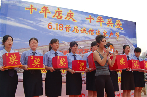 在北京誠信達(dá)汽車銷售公司首屆客戶節(jié)活動現(xiàn)場,從誠信達(dá)購買奇瑞汽車、昌河鈴木、比亞迪、上海華普等品牌汽車的400多名新老客戶齊聚“誠信達(dá)”,與工作人員一起見證了這一個具有紀(jì)念意義的時刻。誠信達(dá)也為新老客戶準(zhǔn)備了實實在在的實惠。他們不僅為客戶準(zhǔn)備了免費修車咨詢,免費保養(yǎng)等與車相關(guān)的服務(wù),而且凡是誠信達(dá)的客戶都將獲得誠信達(dá)汽車銷售公司饋贈食用油一桶。另外,在油價不斷上漲的今天,他們?yōu)閺V大客戶準(zhǔn)備了汽油票和自駕游大抽獎活動。