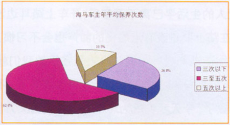 在本項調(diào)查中,多數(shù)用戶的年保養(yǎng)次數(shù)在3~5次之間,這一比率達(dá)到62.5%;69名用戶的年平均保養(yǎng)次數(shù)低于3次(占26.8%);每年保養(yǎng)五次以上的有27人(占10.5%)。