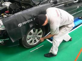 用風(fēng)炮將輪胎安裝上去后,主維修人員還將用扭力桿調(diào)節(jié)到一定的參數(shù),將四個(gè)輪胎加固,而此時(shí)的副維修人員也沒(méi)有閑著,復(fù)檢發(fā)動(dòng)機(jī)內(nèi)部是否存在問(wèn)題,就怕某些工序被遺忘。將以上程序做完后,凱美瑞5000公里的保養(yǎng)工作算是正式完成。如此快速有序的工作程序筆者還是第一次見(jiàn)到,有條不紊,快而不亂,每個(gè)人都清楚自己的工作和順序,不會(huì)遺忘任何一個(gè)細(xì)節(jié)。