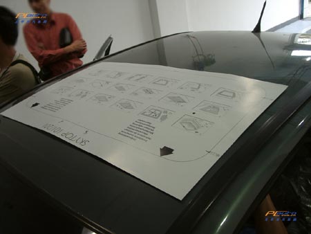 (接上集) 車主和店家商議好安裝天窗的事宜后,把車開到安裝車間。于車主的在場下,工作人員檢測車身,把車身劃痕和缺陷記錄下來,然后由車主簽名。很快,從倉庫里取出來的天窗即拿到車間。配套的安裝定位尺紙即被工作人員安放到車頂外部進行定位度量。然后,內(nèi)飾定位紙也被裁剪出來。安裝人員先在原印在定位紙上的鉆孔位打孔,并把螺釘穿插進去;在車內(nèi),內(nèi)飾定位紙也有相應(yīng)的定位螺釘安裝位,從外定位紙穿插過來的螺釘同時穿過內(nèi)定位紙,內(nèi)外懸緊螺絲,就可把車頂鋼板和內(nèi)飾板定位好。