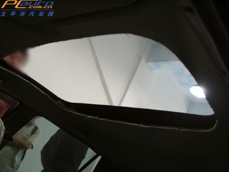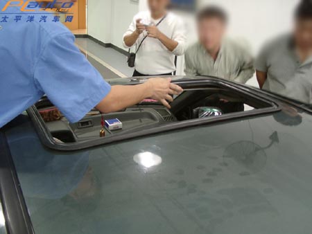 防銹漆后的工序,即是安裝天窗外框架。經過準確度量和裁切的頂孔,剛好可以把外框架容納下來,這還沒完,下面還要進行內框的接合。