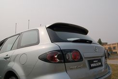 如果從正面看過去,你可能會認為這是一輛Mazda6轎跑車,經典的Mazda運動型保險杠和格柵顯得力量十足,烏頭燈設計配以細長的頭燈造型讓人“不寒而栗”,修長的車頭造型并不陌生。只有B柱之后的部分才能讓我們看清這是一部wagon,下降平緩的車頂和增加的D柱在擴大后備箱空間的同時帶來了一種飽滿而有力的感覺,這種巧妙的設計讓尾部保持了一部高性能轎車應有的優(yōu)雅。曲線圓潤的尾部和集成了靚麗尾燈大型精致的高位擾流板與整車造型協(xié)調統(tǒng)一,在降低風阻的同時,也勾勒出Wagon特有的動感和矯健。
