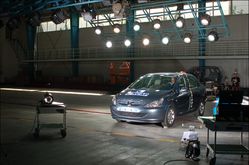 加分的項目主要有兩個方面。第一,裝備有安全帶提醒裝置的車輛,可得到加分(最高加2分)。此裝置必須包含有聽覺信號形式,若駕駛員位佩帶安全帶,則聽覺信號在以下條件之一時必須被激活。1、車輛已發(fā)生向前運動60秒。2、車輛已發(fā)生向前運動500米。3、車輛的向前行駛速度已超過25km/h。滿足以上條件的可加1分。另外1分,則是為前排成員準備的。如果前排乘員位置有安全帶提醒裝置,且座椅本身帶有使用狀態(tài)監(jiān)測功能,則相應得到1分的加分。若沒有座椅使用狀態(tài)監(jiān)測功能,則相應得到0.5分。 第二,配置有側(cè)氣囊和氣簾的車輛,若該側(cè)氣囊和氣簾在碰撞試驗中正常工作,則可得到1分的加分。 | 部位 | 部位罰分項 | 得分 | | 頭部 | - | 0~4 | | 胸部 | 若背板力Fy值過大,則胸部得分應被修整,修正值為0 ~ -2 | 0~4 | | 腹部 | - | 0~4 | | 骨盆 | - | 0~4 | | 總體罰分 | 對于每一個車門,若在撞擊中開啟,則分別減去1分 | 總體罰分最高限定為4分 | | 對于前排駕駛員側(cè)的安全帶,若在實驗過程中失效,則減去1分 | | | 碰撞試驗后,若燃油供給系統(tǒng)存在液體聯(lián)系泄漏且在碰撞后前5分鐘平均 | |