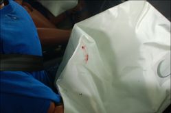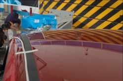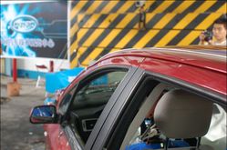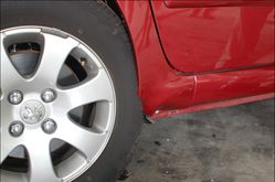另外一點值得提及,在撞得面目全非的車頭處,記者注意到,有幾個位置出現(xiàn)了不同程度的液體泄漏。在記者提出質(zhì)疑后,試驗場的工程師在現(xiàn)場逐一對這些液體進行了確認(據(jù)了解,根據(jù)C-NCAP的操作規(guī)程,車輛在撞擊前要將油箱內(nèi)的燃油放凈,然后加入同等質(zhì)量的水取而代之,但水中還是會殘存有少量的燃油,因此很容易辨別)。經(jīng)確認,這些液體主要是從電瓶、玻璃清洗劑、和水箱中流出,沒有燃油泄漏情況發(fā)生。后據(jù)技術(shù)人員解釋,正碰試驗中很少出現(xiàn)燃油泄漏情況,對于燃油泄漏危險的評定主要是在國家強制的追尾碰撞試驗中進行。  車輪向后頂入車體(左) 車頂沒有出現(xiàn)凹陷(右)