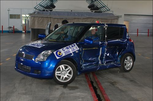 既然沒有裝備可以加分的側氣囊,雨燕的側面安全保障就全靠車身的整體結構來承擔了。我們在現場看到,與先前的雅紳特一樣,移動臺車從側面對雨燕的沖擊和假人在撞擊中側擺的頭部,并沒有使其側窗破碎。當然之前的文章也提到過,這并不會對實驗結果產生太大的直接影響,安全與否還是要看假人頭、肩、胸、腹等部位,以及車輛右側B柱的加速度和受力情況。但至少可以肯定假人的頭部沒有和側窗發生太嚴重的接觸。