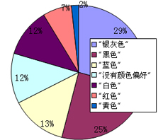 | 話題五:您對哪個顏色的汽車有偏好嗎:1,紅色;2,黑色;3,藍色;4,黃色;5,白色;6,銀灰色;7,沒有顏色偏好。 銀灰色成為最多投票者的最愛倒是讓編者始料不及,汽車顏色偏好銀灰色和黑色的占到了投票者的一多半,倒也不難理解,畢竟是個大物件,還是選擇大氣、穩重的顏色為上策,選個過于流行的顏色,顏色流行過了,車可咋辦啊,不過,這種思維方式不適用追求個性者啊! |
