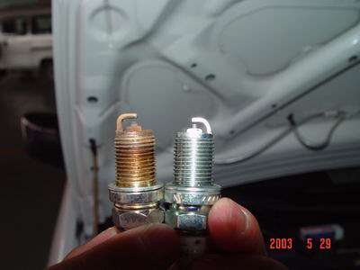 今早8:20,一夜冷車,小心翼翼拔掉缸線,(因?yàn)橐灿懈拙斷的),再用松動劑噴了火花塞的安裝孔,每孔約兩毫升。然后靜置1小時;用隨車帶的工具包里的火花塞搬手,先拆第三缸,比較順利的拆下。再拆第二缸,非常輕,幾乎沒有扭力,心中一驚,估計早已斷了,拔出,果然不出所料,看茬口,明顯早已斷了多半圈,僅靠三分之一連著,(維修手冊上居然寫明要四萬公里才換,估計那時候不用拆就全掉吧)火花塞的芯拿出來,拍照取證,剩的兩個就先不拆了。