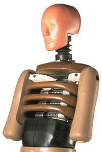 Hybrid III擁有的同比列尺寸的金屬肋骨,以用來測試前排乘員在受到正面撞擊時肋骨,胸腔受到的沖擊力已經在沖擊下胸腔變形的幅度。