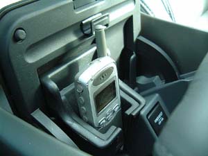 我倒是挺喜歡那個在中央控制臺下的大且多功能的貯物柜。它有2個內置貯物室和可滑動的蓋,2個可移動的茶杯座,一個折疊的面板,上面有一個蜂窩式電話機座,12伏電源插座,保證在駕駛時或停車時,你能隨時接聽電話,而且你還能將面板折疊,藏起電話機。中央折疊式靠手也內置一個挺大的貯物空間,可存放硬幣、CD、磁帶、相機、電話。我還喜歡它的另外一點:一按按鈕,車內所有的燈立刻亮起來,而且在所有座位上都安裝有燈。