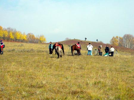 小知識:木蘭圍場的“木蘭”是滿語,意為哨鹿?滴醭跚飵П鴣恚刻焯焐珓偭習r,選人戴著木制的鹿頭,隱藏在草叢中學公鹿求偶而鳴,喚來母鹿和其他為食鹿而聚攏的動物,然后合圍射殺。