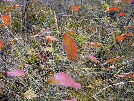 飄落在草叢間的紅葉