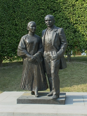 孫中山與宋慶齡銅像坐落于本館翠亨樓西側,由雕塑家廖慧蘭創作,2002年10月落成。