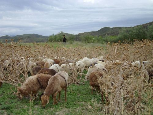 第三天從武威到嘉峪關,312國道像一條黑色的緞帶指向天邊。只能用蒼涼來形容西部,一眼能看到天邊,紅土、黃石、黑山,遠遠的山上白雪在陽光下銀光閃閃。沒有人,沒有房子,樹也很少見,稀有的綠色是路邊的駱駝刺。偶爾見到幾個養路工、路邊修車的司機和放羊的老漢。西北的羊會過馬路,走到馬路邊知道停下來左右看看,然后飛快地跑過去。如果碰上莽撞的司機搶路,它們會緊急“剎車”:前腿一支,后背拱起,停住,很有“羊道”。到酒泉準備吃飯,“瑞虎”“很巧”地停在修車鋪,車身歪著:后轱轆也癟了,拆開看“四寸長的釘子”已經把整個帶毀掉了。
