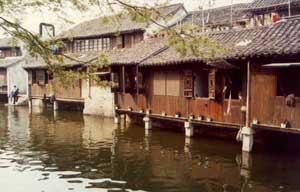 茶館是江南水鄉特有的一種休閑場所。烏鎮最多的時候有六十幾間茶館。其中處中市的“訪盧閣”、“一洞天”等規模較大,其他分散在四柵的則是一些較小的茶店。小茶館的主顧,大都是鎮上的農民。舊時的烏鎮市河河面狹小,農民上街乘坐的航船和赤膊船,很難進入市內,一般都停放在四方柵頭上。因此四柵的那些小茶館,就成了街上農民歇腳的地方。而象市中的“訪盧閣”這些茶館里的茶客,則大都是本鎮上的一些紳士和富商。