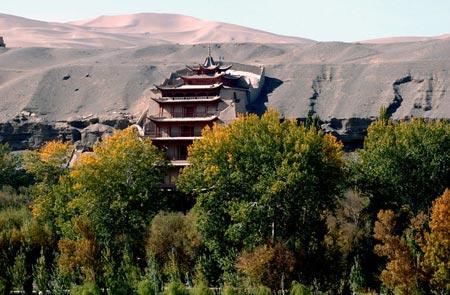 莫高窟,又名“千佛洞”,位于敦煌市東南25公里處、鳴沙山東麓的斷崖上,是我國三大石窟藝術寶庫之一。洞窟始鑿于前秦建元二年(公元366年),后經歷代增修,今存洞窟492個,壁畫45000平方米彩塑雕像2415尊,是我國現存石窟藝術寶庫中規模最大、內容最豐富的一座。1987年被聯合國教科文組織列為世界文化遺產。