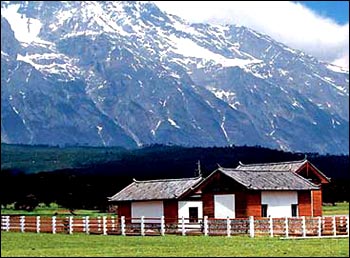 《千里走單騎》由高倉健扮演的老人接到兒媳通報兒子去世的消息后,孤獨地站在玉龍雪山前流淚……