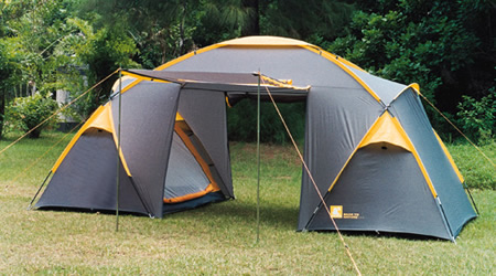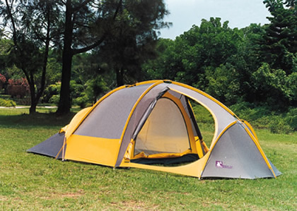 夏季使用:單層,相當(dāng)通風(fēng),屬低海拔露營式。它可以抵抗小雨,通常頂蓋為通風(fēng)的紗窗網(wǎng),底層為尼龍布,有外帳。