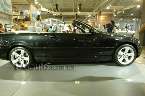 3系列雙門轎車車頭的雙腎型水箱護罩比房車款加寬了一點,頭燈和方向燈包角的形狀也已有所不同;前后保險桿上的黑色防撞護條被取消了,前車牌框下方變成一個大型的黑色進氣網柵,兩盞前霧燈換成了圓形投射式設計,鑲嵌在進氣網柵的兩端,前下巴則改為向外突出的霸氣造型。