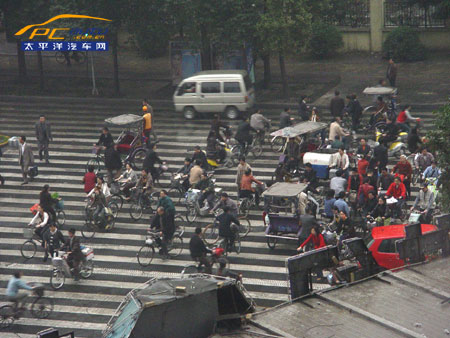 車展前的花絮 成都的早晨--自行車,巨大斑馬線,人